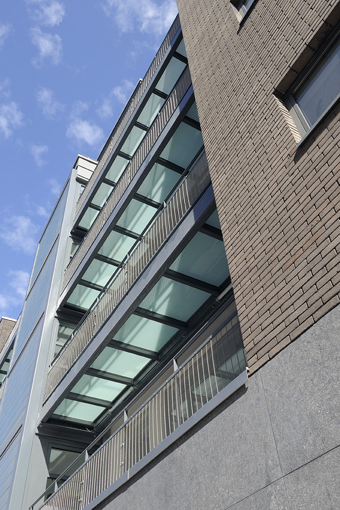 Chaque étage, y compris les appartements les plus éloignés, est desservi par un dispositif de circulation central unique, composé de passerelles en acier et en verre. En été, les résidents peuvent utiliser ces passerelles comme terrasses. Un des appartements du rez-de-chaussée a été adapté aux besoins de moins valides.