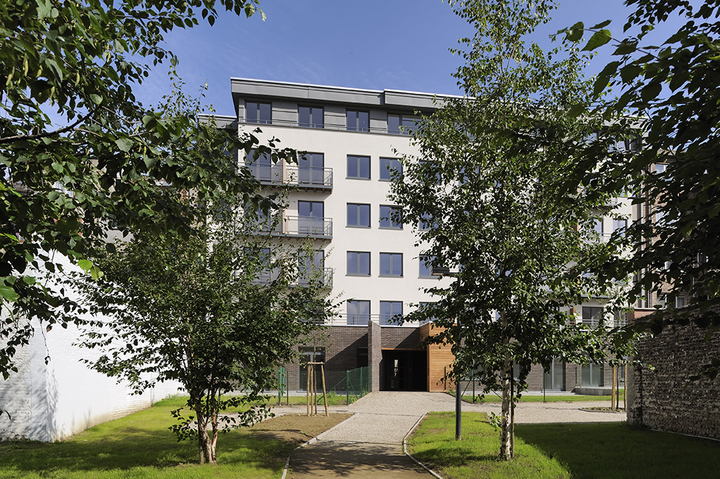 L’utilisation de matériaux durables et de qualité gomme toute connotation négative d’habitation sociale. Dans les appartements, une palette de coloris sobre et stylée est complétée par des accents plus vifs dans la cage d’escalier. Le but recherché est que les résidents soient fiers de leur environnement et le traite à terme, avec tout le soin et l’attention nécessaires.