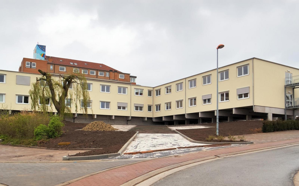 Le projet consiste en la construction d’un bâtiment modulaire provisoire. Le niveau de sous-sol existant (niveau -1) est entièrement maintenu. Sur ce niveau, 2 étages (un rez-de-chaussée et un premier étage) sont ajoutés. Le premier étage est relié par un couloir à l’hôpital « Sisters of Mercy ». Le but de ce projet est de poursuivre l’agrandissement de l’hôpital, en tenant compte des niveaux de plancher existant du bâtiment. Grâce à ce procédé, l’hôpital peut accueillir 37 lits par niveau.