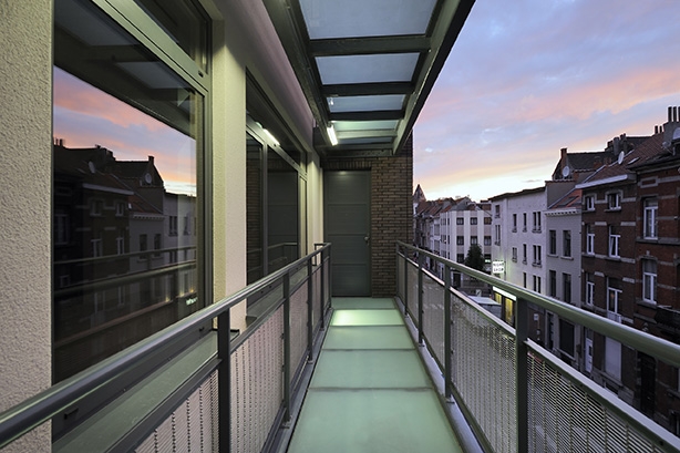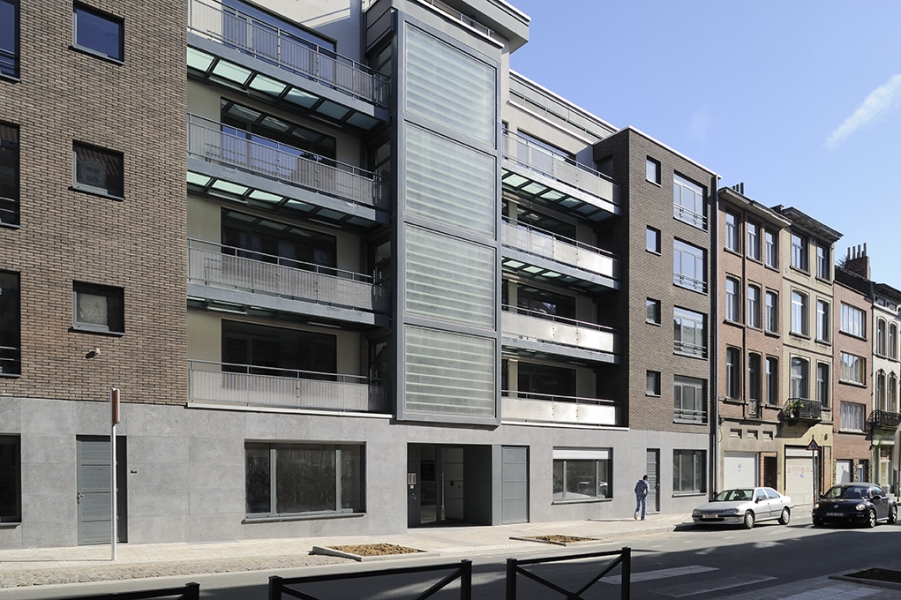 La transparence est un choix réfléchi pour le plan de ce projet, tant d’un point de vue fonctionnel que constructif. Il mise sur une utilisation optimale des superficies disponibles et une construction logique et  univoque. Des choix qui influencent positivement le budget du projet. Les zones résidentielles contre les façades avant profitent pleinement de la lumière du jour. Les espaces fonctionnels qui n’ont que peu ou pas du tout besoin de la lumière du jour, sont installés au cœur, dans l’axe vertical du bâtiment. Ce volume central fait également fonction d’amortisseur entre les espaces de jour et de nuit.