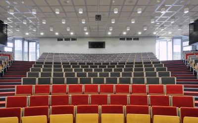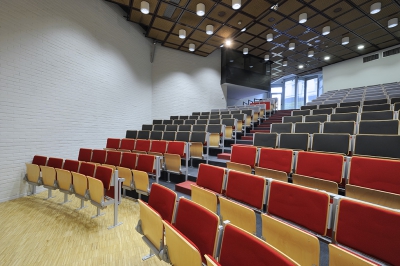Au printemps 2006, le coup d’envoi a été donné à d’importants travaux de rénovation dans la bibliothèque, les six auditoriums du rez-de-chaussée et la cafétéria. Les auditoriums du rez-de-chaussée ont été adaptés et rafraîchis par la pose d’une couche de peinture blanche sur les murs en briques, des appareils d’éclairage contemporains, un nouveau revêtement de sol et de nouveaux sièges avec un revêtement acoustique et des tablettes en un rouge très chaleureux.