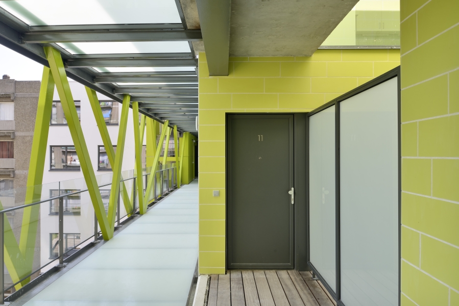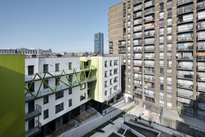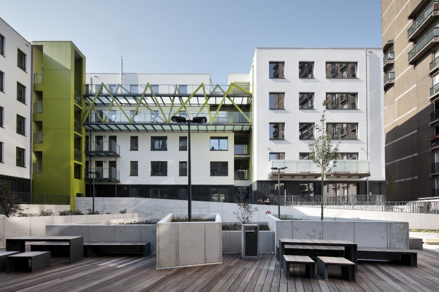 L’ancien immeuble à appartements monolithique a été transformé en un nouvel immeuble contemporain de logements sociaux. Les appartements exigus existants ont été transformés en nouveaux lieux de vie ouverts, conformes au mode de vie actuel. Différentes interventions dans le volume existant ont divisé l’immeuble massif en plus petits volumes et ont introduit la lumière du jour jusqu’au cœur de la construction. Ces interventions ont créé des espaces intimes, des terrasses et des façades intérieures vertes. Le projet a donné naissance à un oasis résidentiel tranquille au centre de la ville.